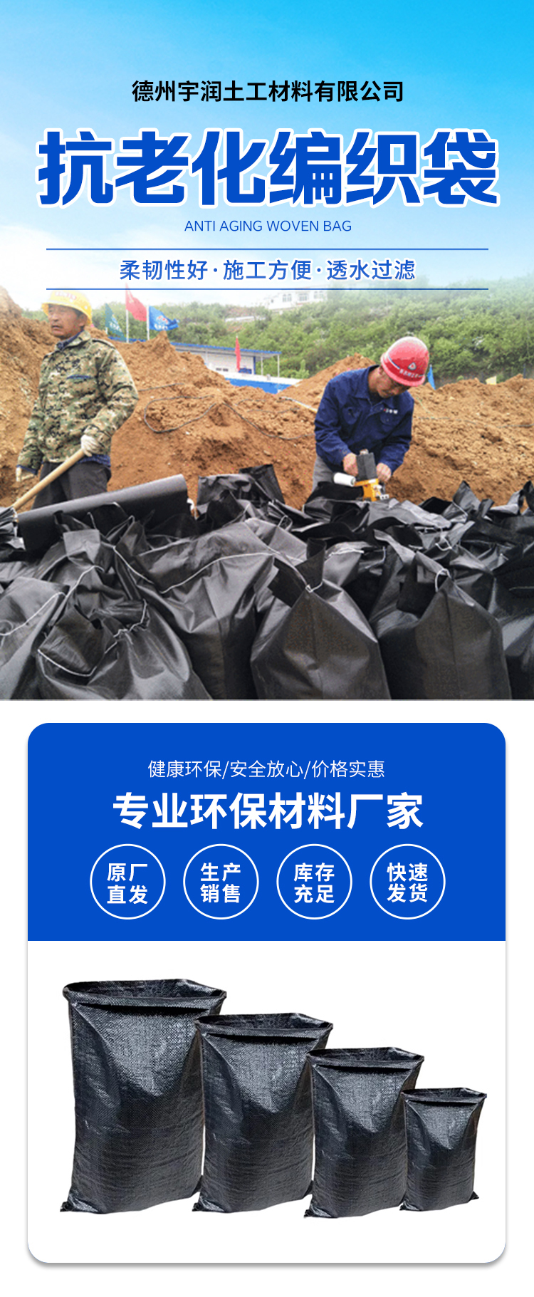 防汛挡土洪围堰的安全与稳定依赖于优质编织袋材料,德州宇润土工材料有限公司深耕土工材料领域多年,推出的抗老化编织袋、抽绳包装编织袋和可降解环保编织袋为防汛工程提供了坚实保障。选择宇润,就是选择专业、品质与环保的结合,助力防汛工作迈向更高效、更绿色的未来。欢迎有需求的客户深入了解合作,共同守护安全与环保双赢。